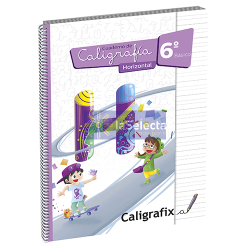 VolverCuaderno caligrafia horizontal 6° basico. Muy practico es una ayuda a través de actividades de caligrafía a desarrollar una escritura clara y ejercitar su aprendizaje. ¡Aprende de una manera más fácil con Caligrafix! Desarrolla una escritura clara y ordenada de manera más fácil.