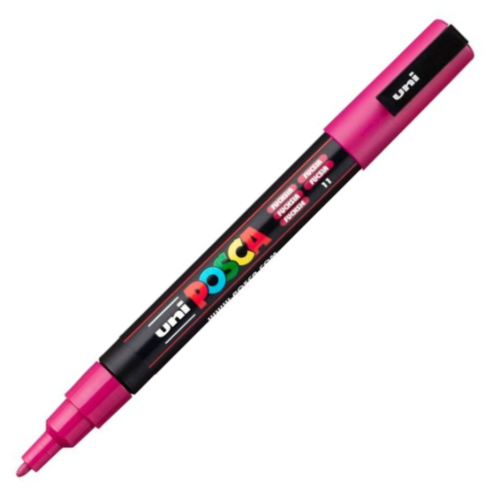 VolverMarcador acrilico posca 3m fucsia a base de agua de secado rápido. Son permanentes en superficies porosas, fácil de limpiar sobre vidrio y no sangran sobre el papel. Los marcadores acrilicos Uni Posca variedad de colores son a base de agua, no tóxico, funcionan sobre todo tipo de superficies oscuras y claras. !No te quedes sin el tuyo!