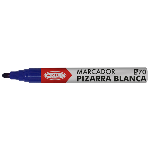 Marcador Pizarra Blanca S70 color azul Artel. Tinta de alta densidad, su punta es redonda. Rinde 400 metros de escritura. Trazo de 3,5mm. Lo puedes encontrar en diversos colores tales como azul, celeste, rosado, negro, rojo, entre otros.
