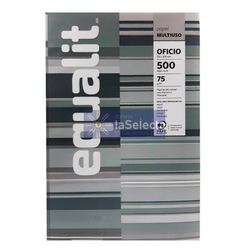 Papel fotocopia envase plomo oficio 75 gr 500 hjs Equalit de fibra blanqueada (muchos sin cloro en la actualidad) y delgado, pero de calidad muy buena y rápida absorción a la tinta lo que permite prolijidad en tus impresiones diarias o de reportes.